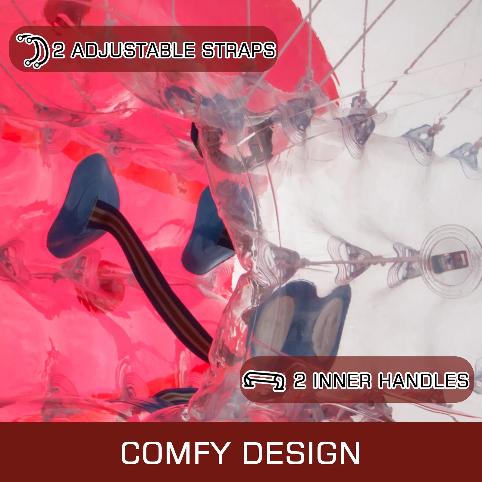 Aufblasbare Luftpolsterbälle mit 2 bequemen Griffen und 2 verstellbaren Schultergurten sorgen für doppelte Sicherheit beim Spielen.