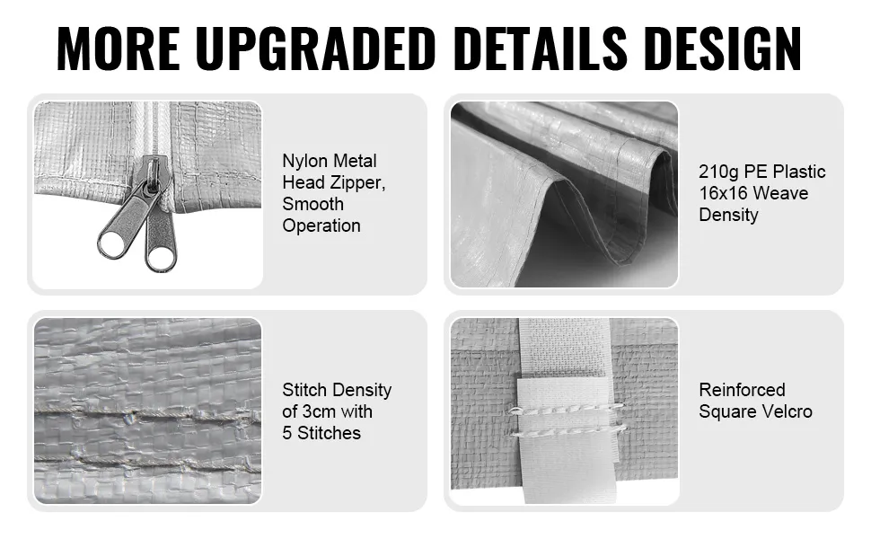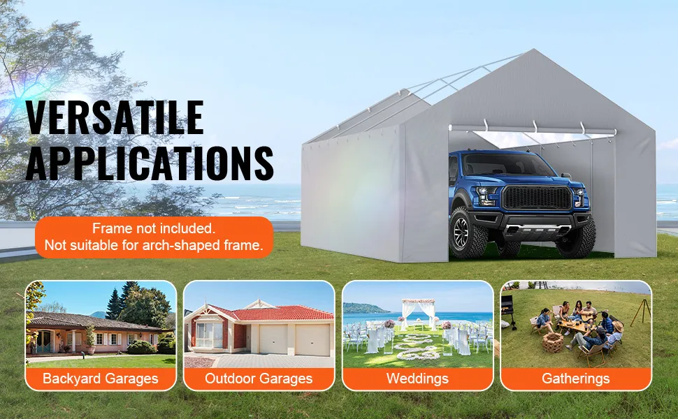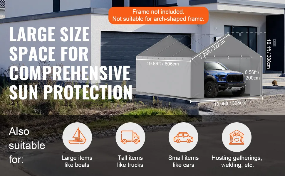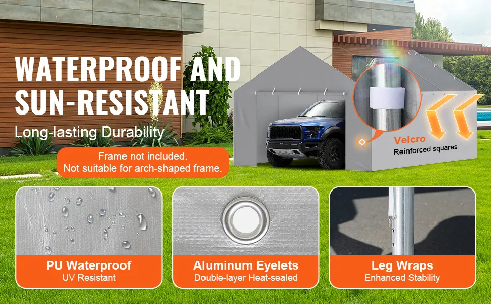 Die VEVOR-Carport-Ersatzüberdachung ist so konzipiert, dass sie eng anliegt und Stabilität und Schutz gewährleistet. Diese Abdeckung passt auf verschiedene Rahmengrößen und ist daher vielseitig einsetzbar. Sie können damit abgenutzte oder beschädigte Abdeckungen ersetzen. Diese Abdeckung passt gut, egal ob Sie einen Carport-Rahmen von Home Depot oder eine Garage mit Metallstangen haben. Diese Abdeckung sorgt für eine nahtlose Passform für Ihren Wagen. Ihre Abmessungen decken den gesamten Rahmen ab und bieten maximalen Schutz vor Verschleiß.