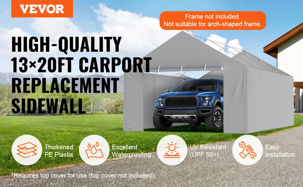 Die VEVOR-Carport-Ersatzüberdachung verfügt über eine zusätzliche Klappe an der Oberseite. Diese Klappe verbessert den Schutz und sorgt für eine längere Haltbarkeit. Sie verhindert Verschleiß und verlängert die Lebensdauer der Abdeckung. Die zusätzliche Schicht bietet zusätzlichen Schutz, um die Sicherheit Ihres Carports zu gewährleisten. Unsere Carport-Abdeckung ist so konzipiert, dass sie den Elementen standhält und zuverlässigen Schutz bietet. Diese Klappe sorgt dafür, dass die Abdeckung auch unter rauen Bedingungen intakt bleibt. Jeder, der einen verbesserten Schutz für seinen Carport sucht, kann diese Abdeckung auch unter rauen Bedingungen verwenden. Die zusätzliche Klappe sorgt jedoch dafür, dass Ihr Carport länger in gutem Zustand bleibt.
