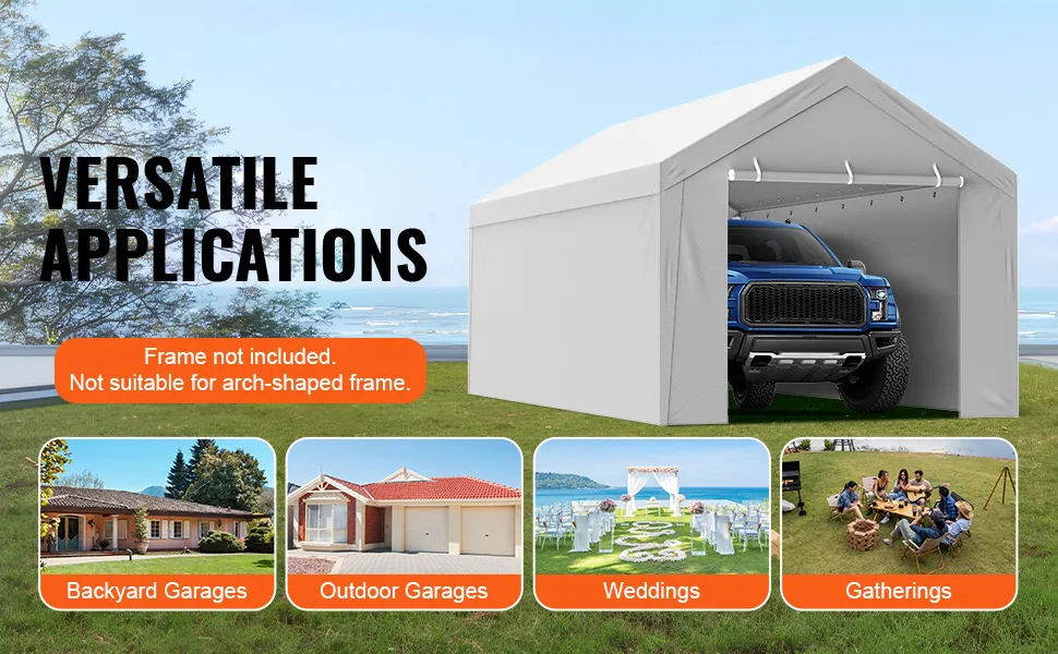 Wofür ist diese Carport-Überdachung geeignet? Die Carport-Überdachung von VEVOR ist vielseitig einsetzbar. Es gibt zahlreiche Anwendungsmöglichkeiten dafür. Sie bietet Schatten und Schutz vor den Elementen für Partys und Unterhaltung im Freien. Sie können sie auch als hervorragende Pferdeunterstand-Abdeckung verwenden, um Ihre Tiere vor Regen und Sonne zu schützen. Die zusätzliche Klappe an der oberen Abdeckung sorgt für Langlebigkeit, sodass Ihr Carport länger hält. Diese Überdachung ist ein echter Hingucker, egal ob Sie sie für Ihr Fahrzeug, Veranstaltungen im Freien oder als Unterstand benötigen.