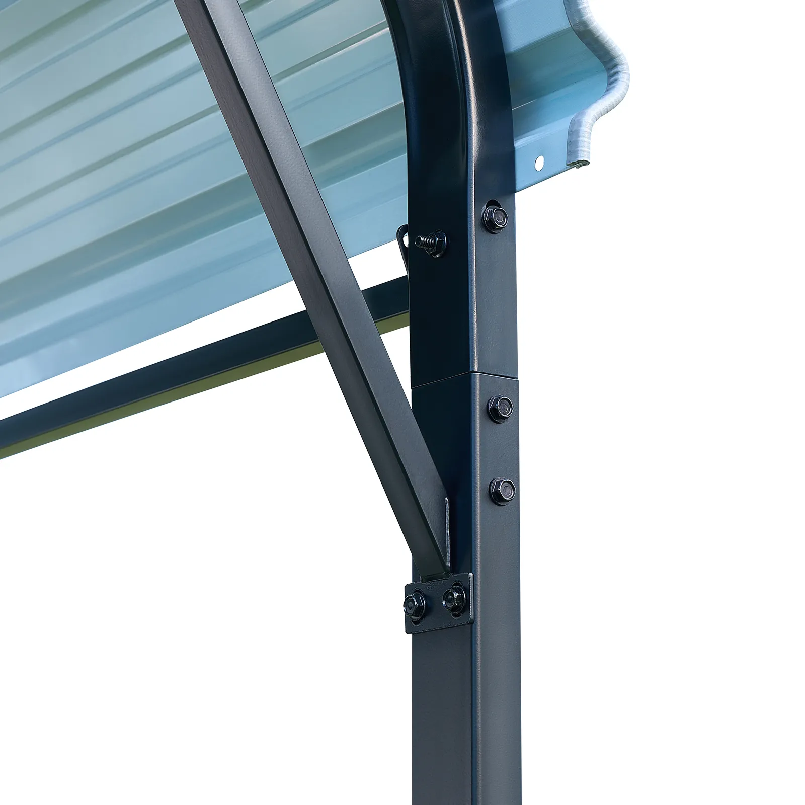 Robustes Dach: Das Dach besteht aus verzinktem Stahl und bietet dauerhaften Schutz. Es ist mit einem hochdichten Dichtungsband ausgestattet, das Regenwasser auf den Dachpaneelen verhindert und so hervorragenden Wetterschutz bietet. Die Autogarage schützt Ihre Fahrzeuge und Ausrüstung vor rauem Wetter.