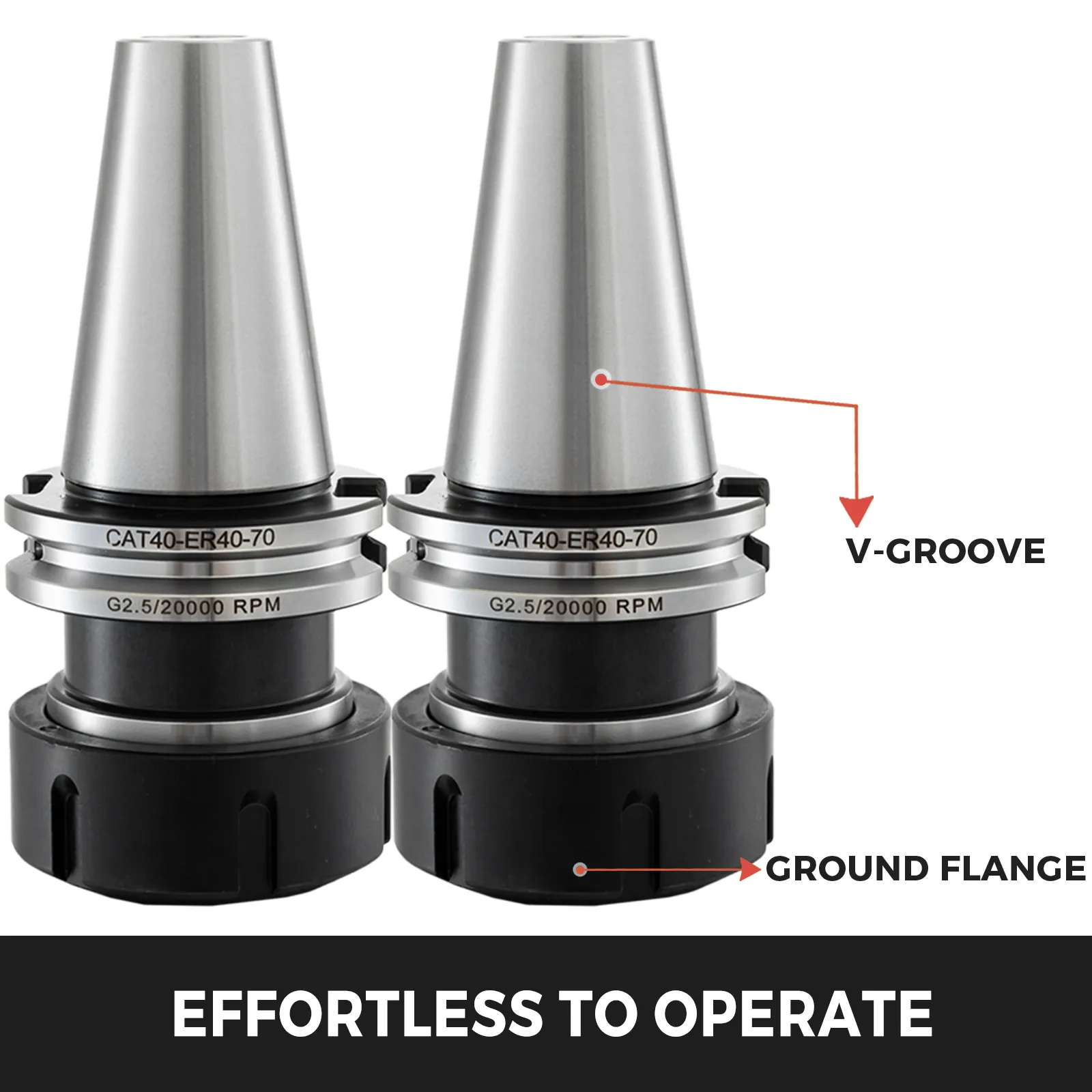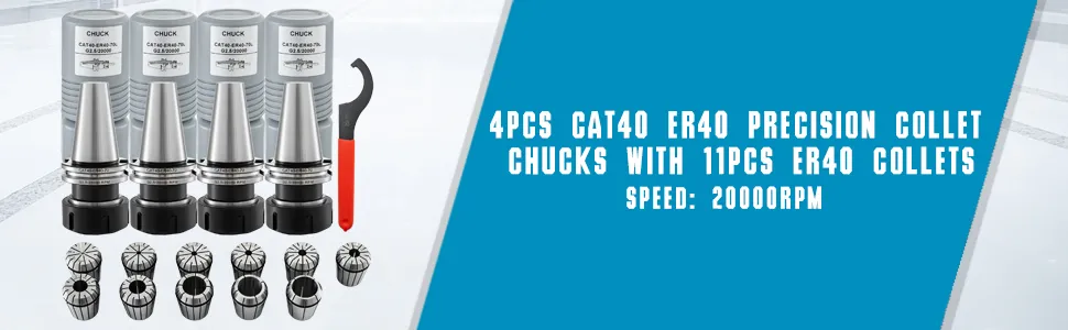 【MÜHELOSE BEDIENUNG】- 4 Stück CAT40 präzisize Spannzangenfutter. Der vollständig geschliffene Flansch und die V-förmige Nut erleichtern den Werkzeugwechsler und reduzieren die Wartung von Spindel und Wechsler.