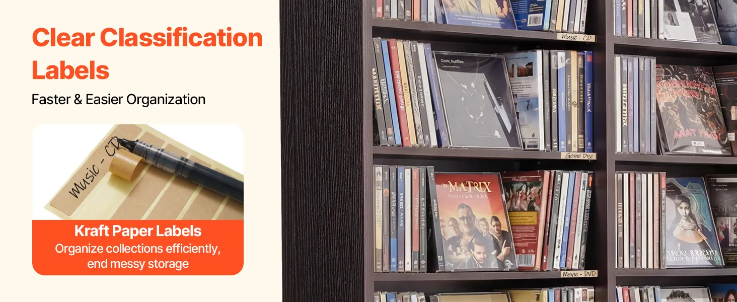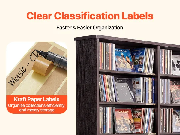 Ordentliche & übersichtliche Aufbewahrung: Die mitgelieferten Etiketten aus Kraftpapier ermöglichen eine individuelle Beschriftung der einzelnen Fächer. So behalten Sie Ihre Sammlerstücke stets im Blick und die Mediensammlung bleibt ordentlich organisiert
