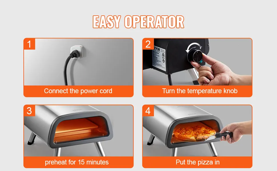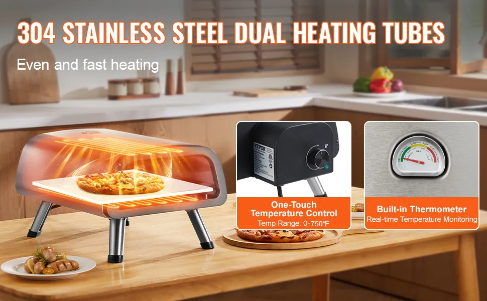 Im Gegensatz zu anderen Öfen mit ungleichmäßiger Erwärmung und Temperaturschwankungen, die zu Verbrennungen führen können, verfügt der elektrische Pizzaofen von VEVOR über einen Pizzastein für eine stabile Wärmespeicherung.