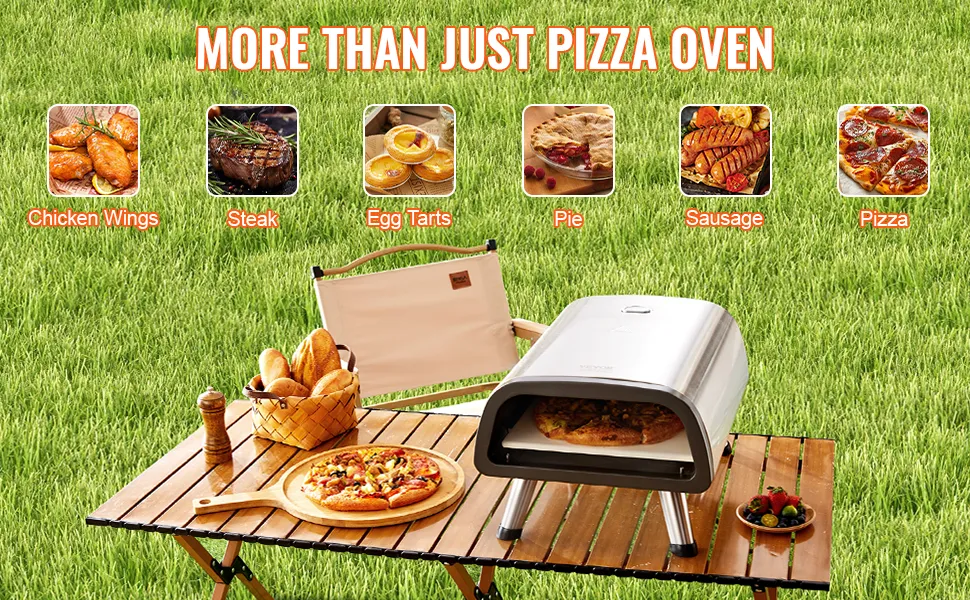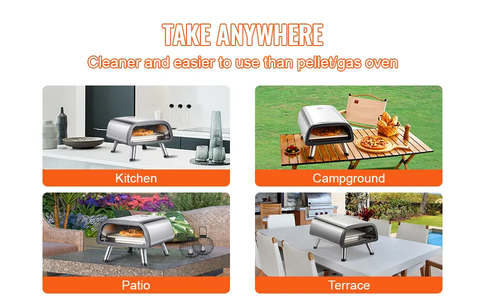 Für den Außenbereich geeignet: Stellen Sie den Ofen auf eine ebene, stabile und nicht brennbare Oberfläche. Er ist nach der IPX4-Norm wasserdicht und kann auch bei einem Campingausflug im Regen verwendet werden. Er ist für das Backen von 12" Pizzen ausgelegt und hat die perfekte Größe, um ohne Abfall zu backen.