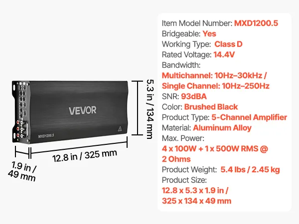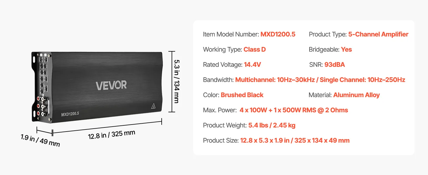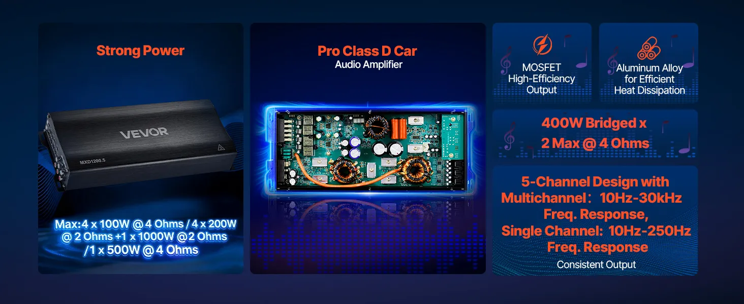 VEVOR Autoverstärker 5-Kanal, Endstufe Klasse D Überbrückbar, Max. 4 x 100 W an 4 Ohm / 4 x 200 W an 2 Ohm + 1 x 1000 W an 2 Ohm / 1 x 500 W an 4 Ohm, Hochleistungsverstärker für Fahrzeuge VEVOR Autoverstärker 5-Kanal, Endstufe Klasse D Überbrückbar, Max. 4 x 100 W an 4 Ohm / 4 x 200 W an 2 Ohm + 1 x 1000 W an 2 Ohm / 1 x 500 W an 4 Ohm, Hochleistungsverstärker für Fahrzeuge