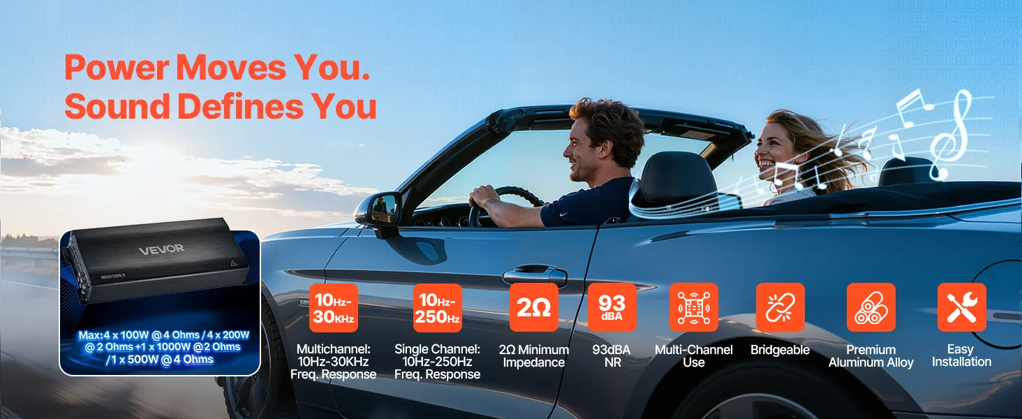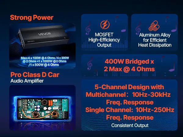 Dieser Mehrkanal-Autoverstärker liefert starke Leistung, klaren, verzerrungsarmen Klang und brückbare Kanäle. Dank hohem Signal-Rausch-Verhältnis, gleichmäßiger Class-D-Performance und Wärmeableitung aus Aluminiumlegierung passt er in verschiedene Fahrzeuge und lässt sich einfach installieren.