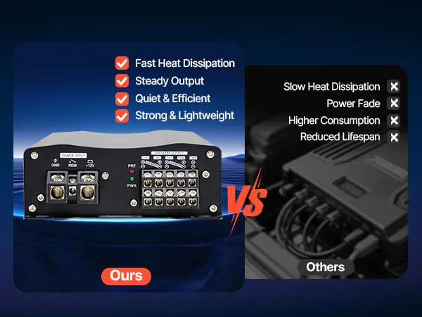 Der Autoverstärker vereint kraftvolle Leistung mit schnellkühlendem Aluminiumgehäuse und liefert so auf jeder Fahrt einen klaren, satten und raumfüllenden Klang. Erfrischt lange Fahrten, reduziert Ermüdungserscheinungen und verbessert Ihr Audioerlebnis im Auto mit anhaltender Klarheit und Komfort.