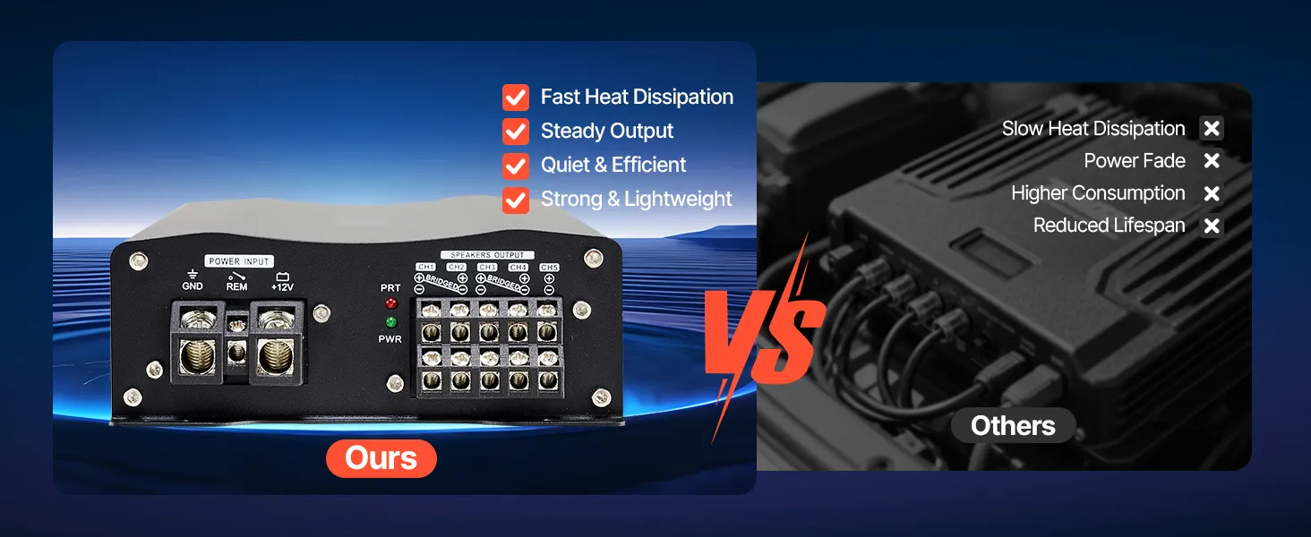 • Breite Fahrzeugkompatibilität: Dieser 5-Kanal-Verstärker wurde für die nahtlose Integration in Limousinen, SUVs, Pick-ups, Geländewagen und Sportwagen entwickelt und ist mit nahezu allen 12-V-Fahrzeugsystemen kompatibel.