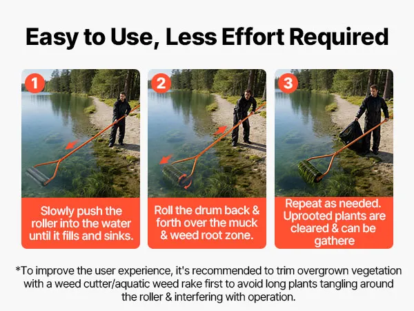 Vielseitig einsetzbar: Die Strandwalze wurde speziell für die Unterwasserreinigung entwickelt und eignet sich hervorragend für Teiche, Seen, Lagunen, Flüsse und Wohngebiete an Seeufern. Sie bietet eine effiziente Lösung zur Bekämpfung von Wasserpflanzen