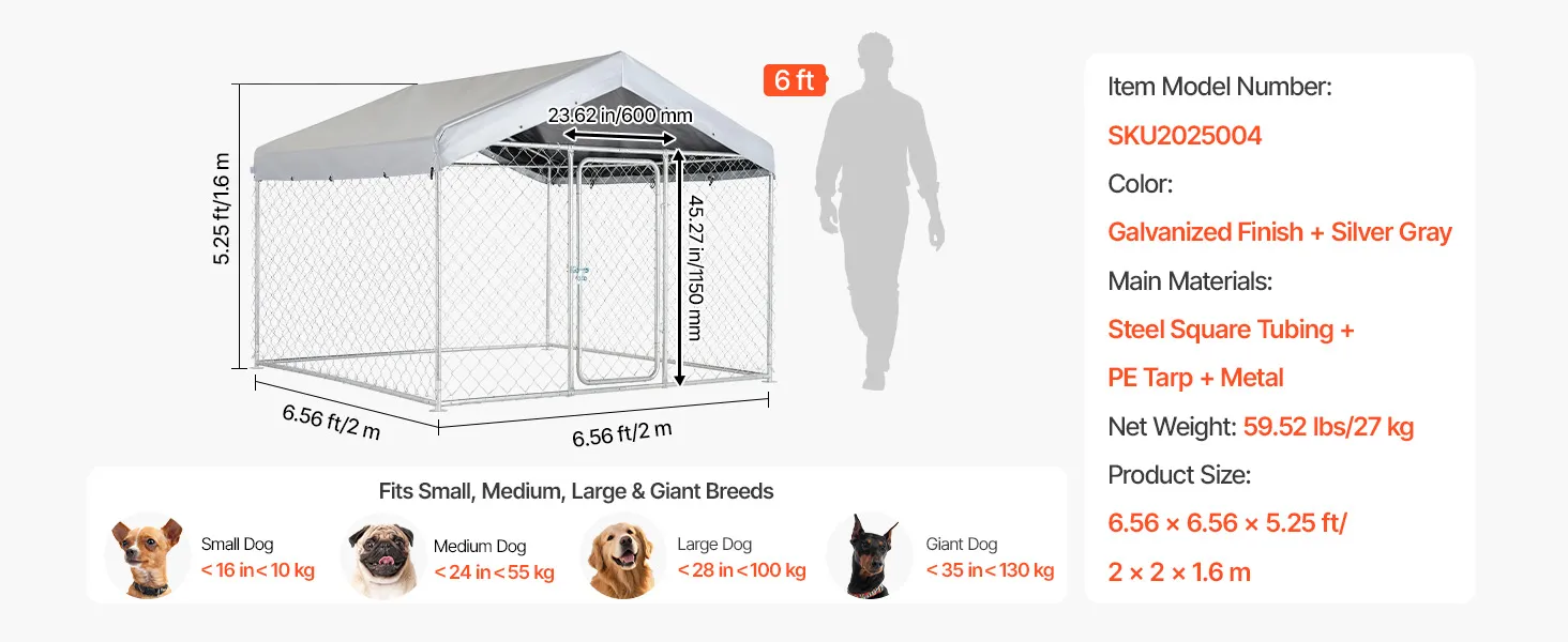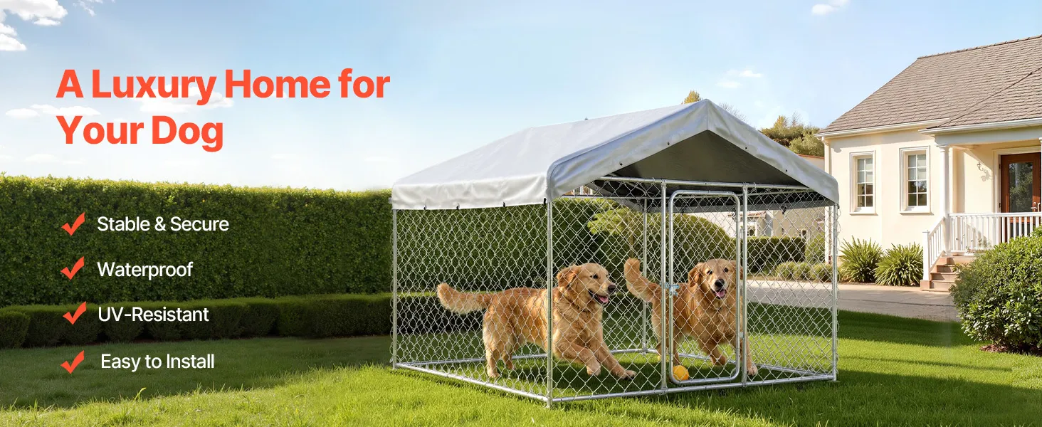 Besonders viel Platz: Das 2 x 2 x 1,6 m (6,56 x 6,56 x 5,25 Fuß) große Hundehaus bietet Ihrem Hund viel Raum zum Toben, Herumstreifen und Entspannen – wie eine geräumige Außenwohnung. Hinweis: Für zusätzlichen Schutz können Sie ein Netz über dem offenen Dach anbringen, damit Ihr Hund nicht herausspringt