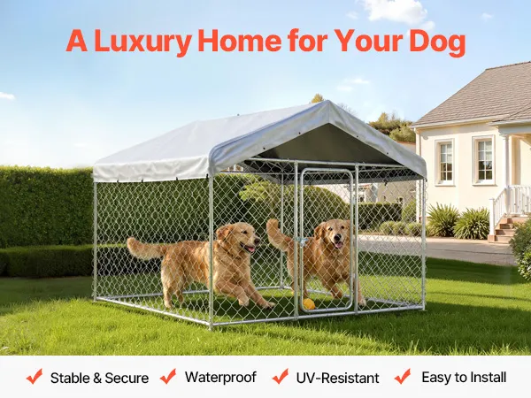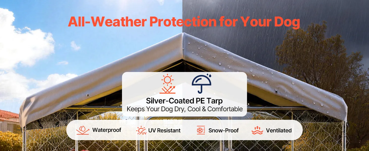Das große Hundehaus ist mit einem PE-Planendach ausgestattet, das Regen und UV-Strahlen abhält und so umfassenden Schutz für Ihre Haustiere bietet.