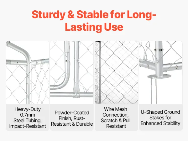 Das große Hundegehege besteht aus robusten Stahlrohren und verschweißten Drahtgitterplatten mit rostbeständiger Beschichtung und ist daher biege-, verschleiß- und korrosionsbeständig. Sie ist für den langfristigen Einsatz im Freien konzipiert.