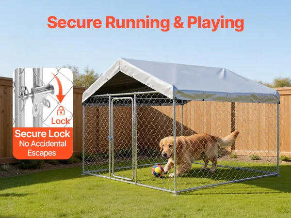 Sicherer Türverschluss: Das große Hundegehege mit Dach für große Hunderassen verfügt über ein robustes Verriegelungssystem, das ein versehentliches Öffnen verhindert und die Sicherheit Ihrer Haustiere gewährleistet