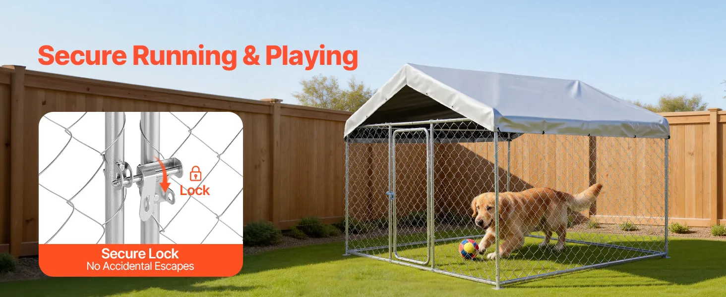 VEVOR Hundezwinger, 2x2x1,6 m, Hundehütte mit Sicherheitsschloss, Outdoor Hundehaus mit UV-Beständiger & Wasserdichter Dachabdeckung, Robuste Hundegehege/Auslauf für Große Hunde