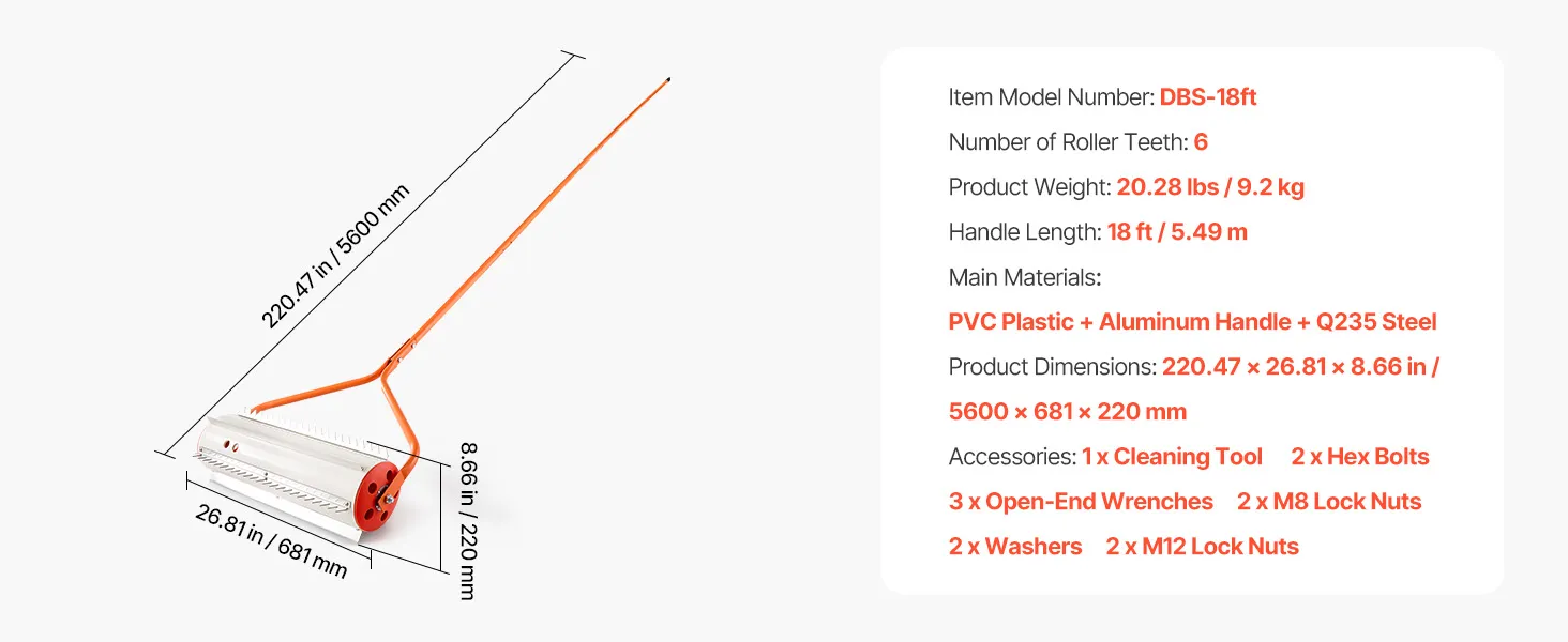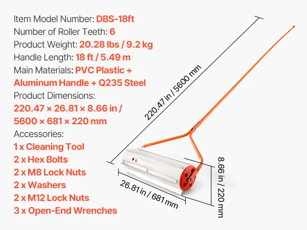 VEVOR Teichrechen 5,49 m, See- & Teichunkrautwalze zur Entfernung von See- & Teichunkraut, Schlammfräse, Wurzeln & Schlammablagerungen, 6 vormontierte Edelstahlklingen, 5 Aluminiumgriffe VEVOR Teichrechen 5,49 m, See- & Teichunkrautwalze zur Entfernung von See- & Teichunkraut, Schlammfräse, Wurzeln & Schlammablagerungen, 6 vormontierte Edelstahlklingen, 5 Aluminiumgriffe
