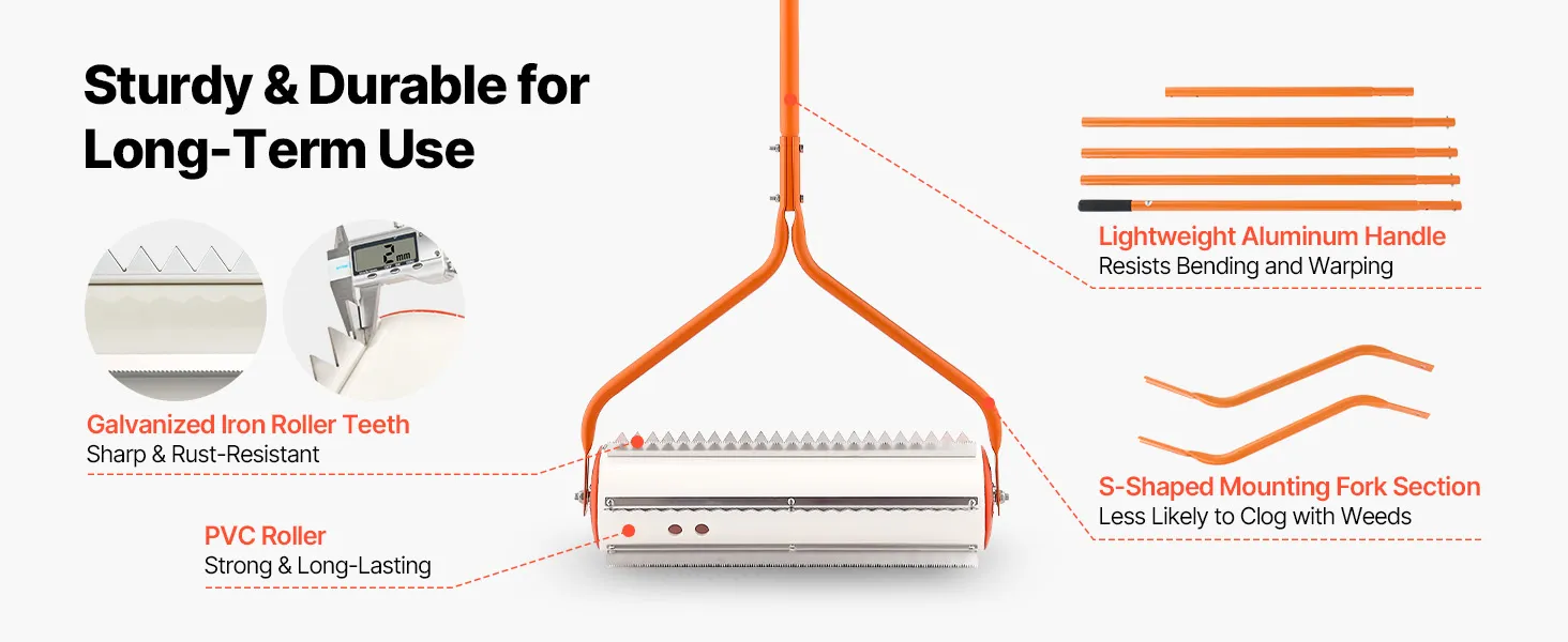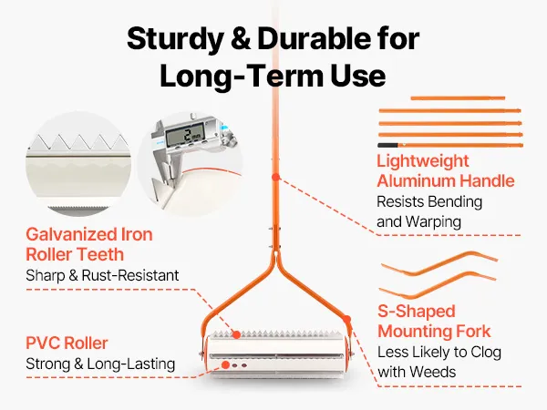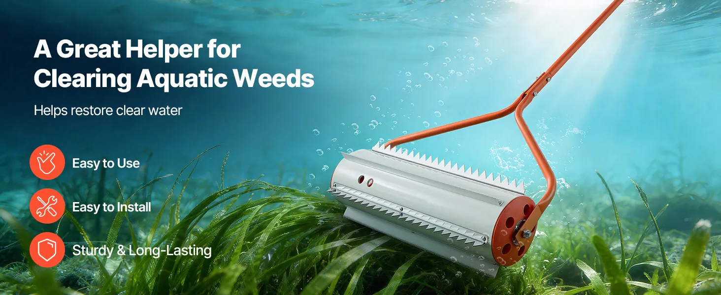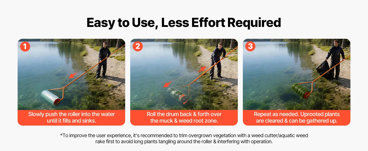• Einfache Bedienung: Die Unkrautwalze für Seen ist mit einem leichten Aluminiumgriff ausgestattet, der die Ermüdung reduziert. Dank des 5-fach verstellbaren Griffs erreichen Sie mühelos auch weiter entfernte Unkräuter, und das mitgelieferte Reinigungswerkzeug entfernt schnell und einfach Pflanzenreste