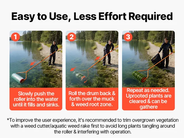 • Vielseitig einsetzbar: Die Strandwalze wurde speziell für die Unterwasserreinigung entwickelt und eignet sich hervorragend für Teiche, Seen, Lagunen, Flüsse und Wohngebiete an Seeufern. Sie bietet eine effiziente Lösung zur Bekämpfung von Wasserpflanzen
