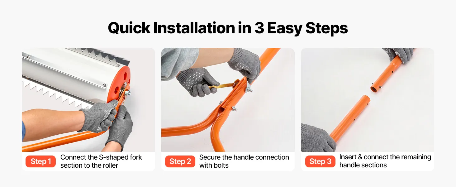 • Schnelle Montage: Die gezahnten Zähne unserer Strandwalze zur Seegrasentfernung sind für eine schnellere Montage vormontiert. Montageschlüssel sind im Lieferumfang enthalten, und die Montage ist anhand der Anleitung in etwa 15 Minuten erledigt