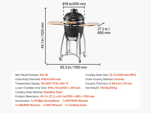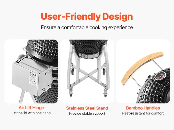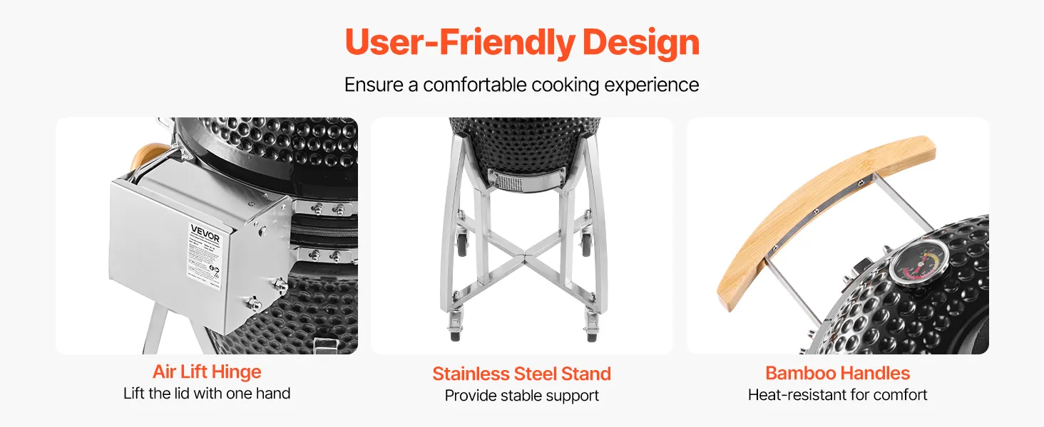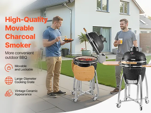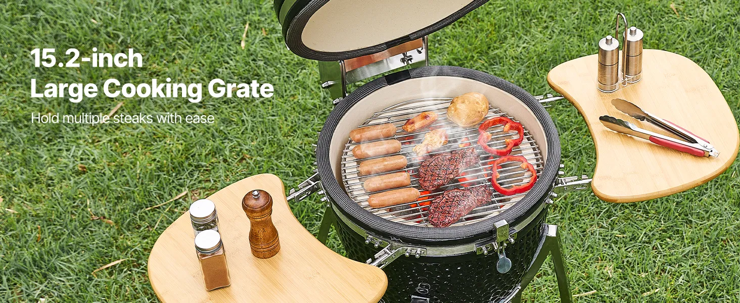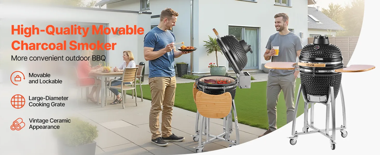 Verleihen Sie Ihrem Grillfest im Garten, Ihrem Campingausflug oder Ihrer Feier im Freien ein reichhaltiges, rauchiges und köstliches Aroma. Dieser Keramik-Holzkohlegrill erfüllt Ihre vielseitigen Kochbedürfnisse.