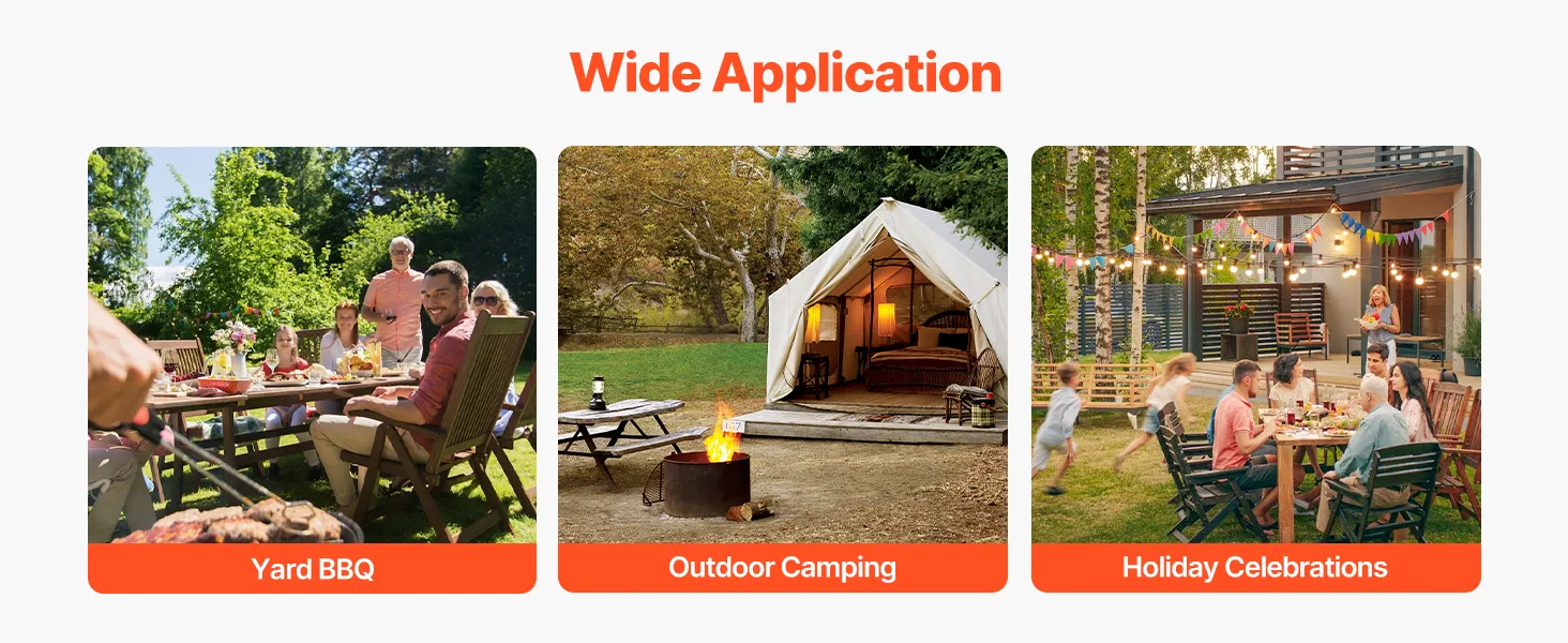 Tragbares Design: Genießen Sie aromatische, rauchige und köstliche Speisen mit unserem VEVOR Holzkohlegrill (450 mm Durchmesser). Ausgestattet mit 4 Rollen (2 davon feststellbar) und seitlichen Bambusgriffen lässt er sich leicht bewegen und ist somit perfekt für Grillabende im Garten und Campingpicknicks geeignet