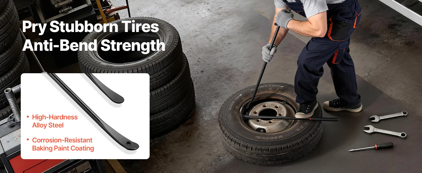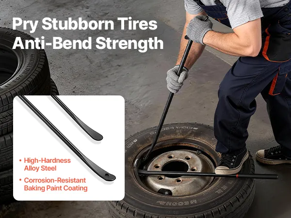 Das aus hochwertigem legiertem Stahl gefertigte Werkzeug zum Reifenwechsel ist so konstruiert, dass es extremen Belastungen standhält, ohne sich zu verbiegen oder zu brechen. Die robuste Bauweise gewährleistet Langlebigkeit und zuverlässige Leistung bei wiederholtem Einsatz unter hoher Belastung.