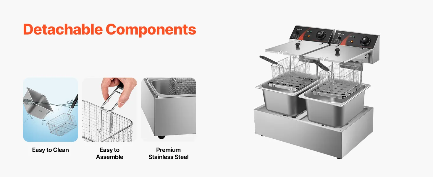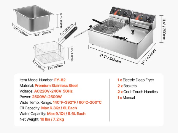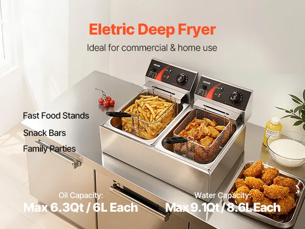 VEVOR wunicorn Fritteuse 295 x 235 x 150 mm Commercial Elektro-Fritteuse Tief, Doppel-Kaltzonen-Fritteuse YB-82 Fritteuse Maschine Silbrig - 6 L + 6 L 5000W 220V für Schnellrestaurants Snackbars 10 kg VEVOR wunicorn Fritteuse 295 x 235 x 150 mm Commercial Elektro-Fritteuse Tief, Doppel-Kaltzonen-Fritteuse YB-82 Fritteuse Maschine Silbrig - 6 L + 6 L 5000W 220V für Schnellrestaurants Snackbars 10 kg