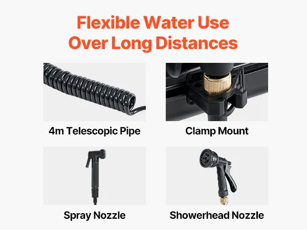 Dieser Wassertank verbindet zwei Sprühköpfe mit einem 4 m langen ausziehbaren Schlauch aus strapazierfähigem PE-Material für eine dauerhafte Nutzung. Er ermöglicht eine Reinigung über große Entfernungen und große Reichweite, ohne Ihr Fahrzeug bewegen zu müssen, was für mehr Flexibilität und Komfort sorgt.