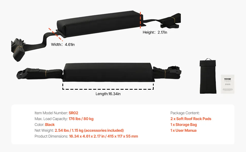 VEVOR Weiche Dachgepäckträgerpolster (395 mm) großes universelles Autodachgepäckträgerpolster, 80 kg belastbares Trägerpolster für Kajaks mit tragbarer Aufbewahrungstasche für SUP-Kanu