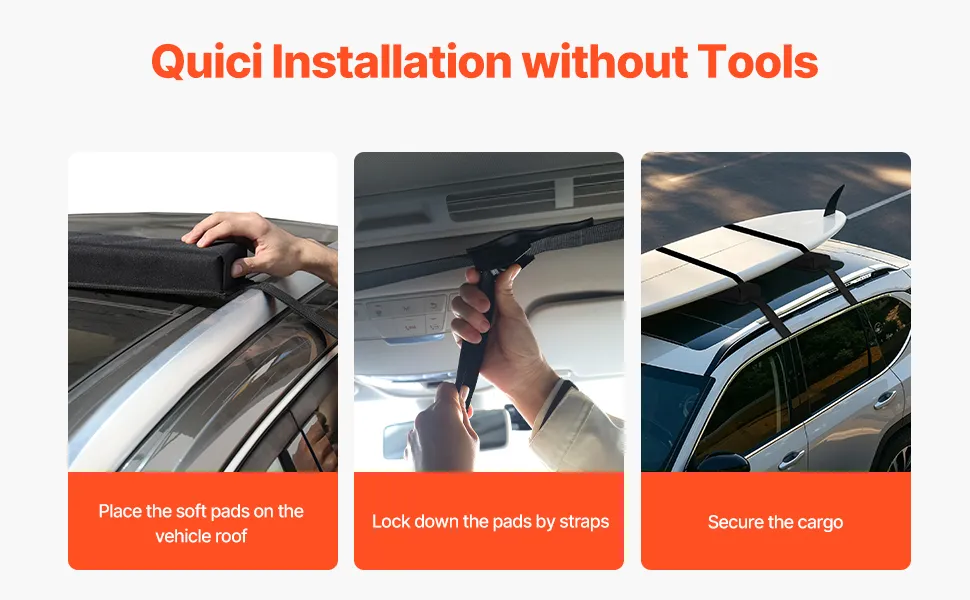 Die Installation ist mit verstellbaren Gurten und Schnallen ganz einfach, sodass die weichen Polster schnell auf Ihrem Autodach befestigt werden können. In nur wenigen Minuten ist Ihr Dachgepäckträger einsatzbereit, sodass Sie Ihre Reise schnell und effizient vorbereiten können.