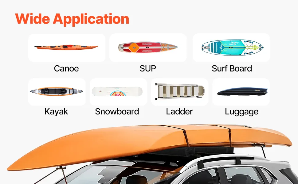 Vielseitige Anwendungen: Schaffen Sie zusätzlichen Stauraum auf Ihrem Dach, um Ausrüstung wie Kajaks, Surfbretter, Longboards, Paddleboards, Snowboards und mehr zu transportieren. Ob für die Freizeit oder die Arbeit, dieser Kajak-Gepäckträger ist eine fantastische Lösung für Ihr Leben unterwegs