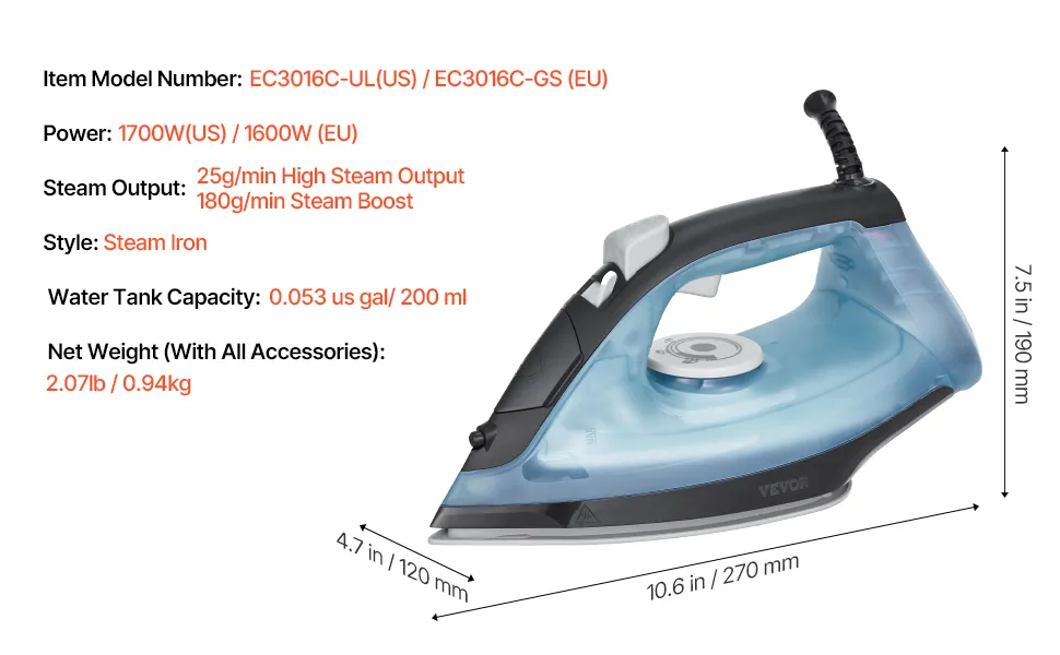 Langlebige Bügelsohle: Das Material aus einer Aluminiumlegierung bietet eine hervorragende Haltbarkeit und eine effiziente Wärmeleitung. Die Bügelsohle hat eine glatte, nicht haftende Oberfläche, die leicht über Stoffe gleitet, das Bügeln zum Kinderspiel macht und eine einfache Reinigung sicherstellt