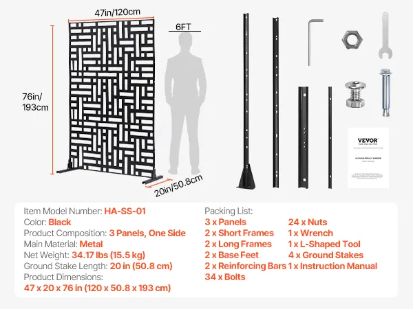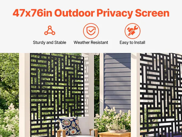 VEVOR Paravent, 120x50,8x193 cm, Sichtschutz für den Außenbereich, freistehende Trennwand mit Ständer, dekorativer Raumteiler aus Stahl für Balkon, Terrasse, Innenbereich, Whirlpool, Schwarz