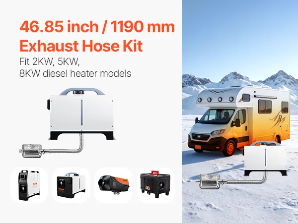 Abgasrohrpaket: Das flexible Abgasrohr-Set für Dieselheizungen beinhaltet ein 46,85 Zoll (119 cm) langes Abgasrohr sowie zwei Klemmen und umfasst alle für die Installation und Wartung erforderlichen Komponenten. Das Produkt ist für die meisten Dieselheizungen konzipiert und gewährleistet einen reibungslosen Abgasstrom sowie eine zuverlässige Leistung