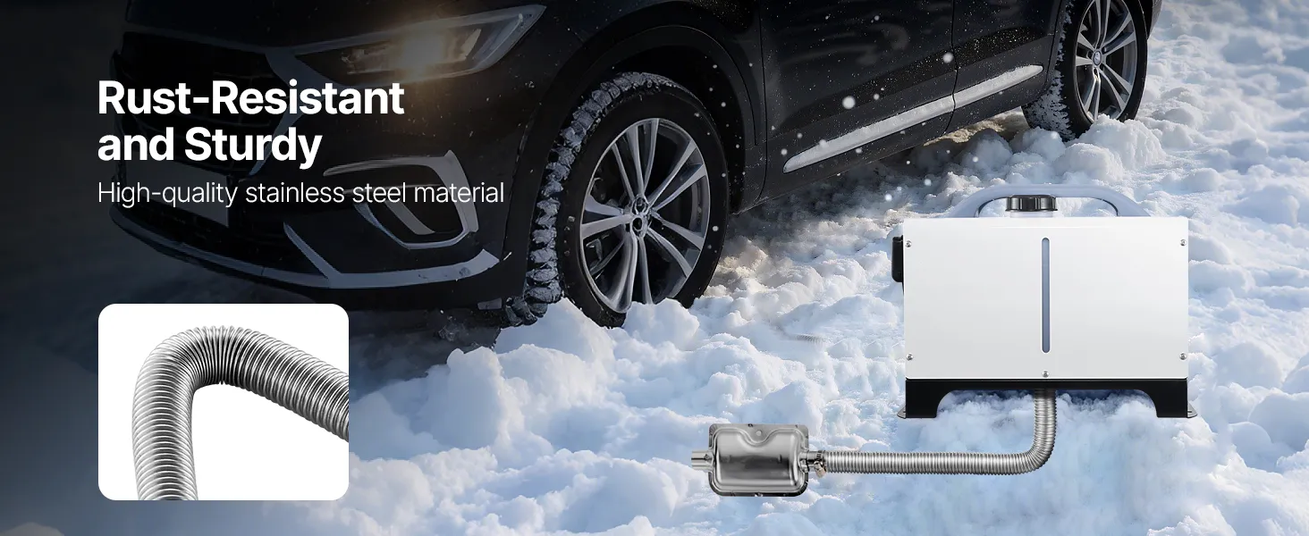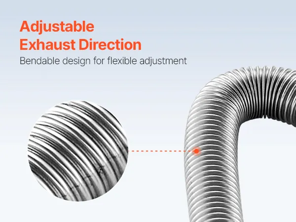 Biegsame Schlauchstruktur: Der Abgasschlauch der VEVOR Luftstandheizung verfügt über eine flexible Struktur, die sich an verschiedene Einbauwinkel anpasst. Er bleibt stabil und unterstützt gleichzeitig einen effektiven Abgasstrom. Dies macht ihn zu einer praktischen Wahl für Heizungs-Upgrades oder -Ersatzteile