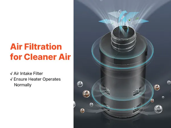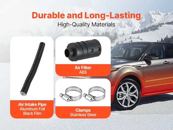 Langlebiger Luftfilter: Dieses Luftansaugfilter-Rohr-Kit verfügt über einen ABS-Luftfilter, der das Eindringen von Staub und Schmutz in die Heizung verhindert und so einen gleichmäßigen Luftstrom und einen konstanten Betrieb gewährleistet. Es unterstützt eine effiziente Heizleistung und verlängert die Lebensdauer Ihrer Dieselheizung
