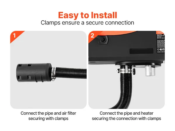 Unser Dieselheizungs-Ansaugschlauch-Kit vereinfacht den Installationsprozess und erfordert nur zwei Schritte. Stellen Sie sicher, dass Sie die alten, beschädigten Teile vollständig entfernen und anschließend alle Klemmen auf festen Sitz prüfen, um eine effiziente Luftzufuhr und einen reibungslosen Heizungsbetrieb zu gewährleisten.