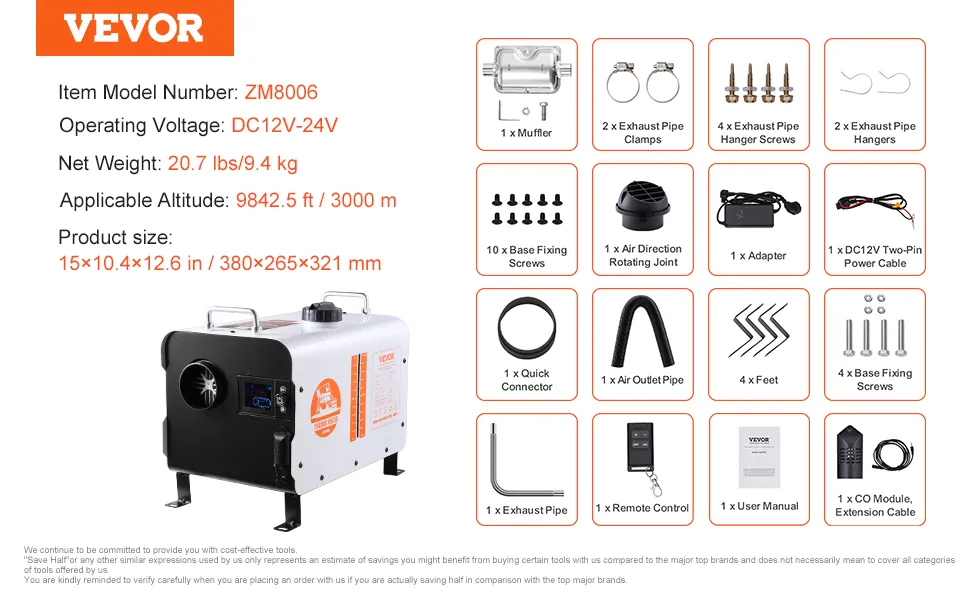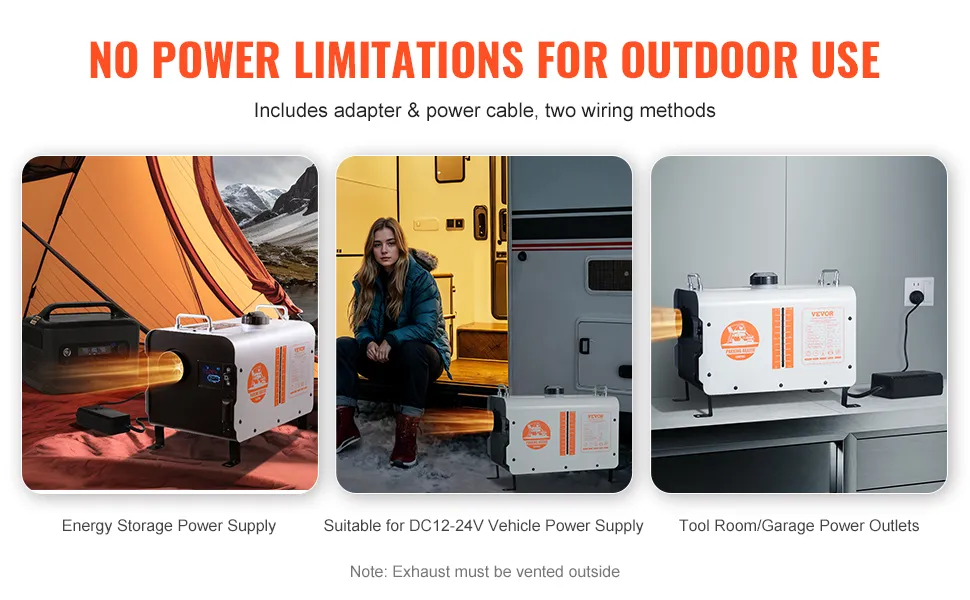 Die VEVOR Diesel-Autoheizung spendet überall konstante Wärme. Sie eignet sich ideal für Campingausflüge, lange Autofahrten oder Arbeiten in abgelegenen Gebieten. Sie können sie in Autos, Wohnmobilen, Booten oder sogar kleinen Unterständen im Freien verwenden. Sie hält den Innenraum warm und trocken und macht kaltes Wetter deutlich erträglicher.