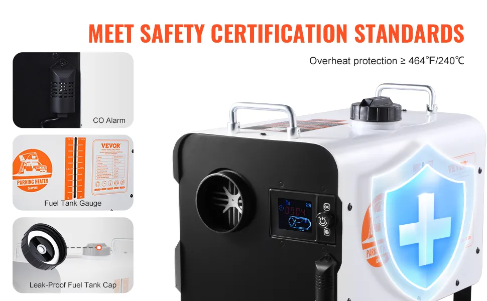 Mit der VEVOR Diesel-Autoheizung genießen Sie wohlige Wärme und Komfort. Ihr intelligenter Kohlenmonoxid-Alarm überwacht kontinuierlich die Luftqualität. Er benachrichtigt Sie sofort oder schaltet die Heizung automatisch ab, sobald er gefährliche Gaskonzentrationen feststellt.