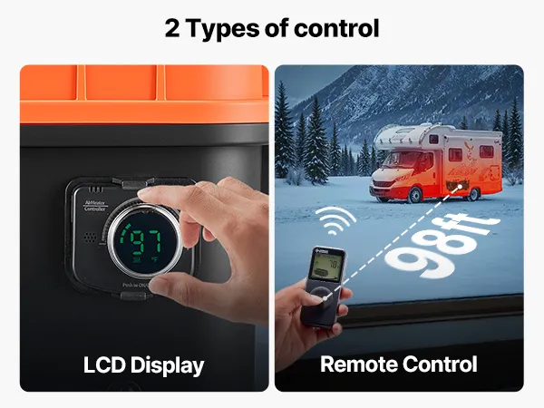 Doppelte Steuerungsoptionen: Mit diesem Diesel-Kraftstoffheizer können Sie die Temperatur (46,4–96,8 ℉ / 8–36 °C) ganz einfach über den LCD-Bildschirm oder die Fernbedienung aus bis zu 98 Fuß (30 m) Entfernung einstellen. Vorheizen vor der Fahrt, um Kaltstarts und Energiebedarf zu reduzieren
