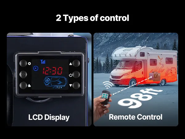 Doppelte Steuerungsoptionen: Mit diesem Diesel-Kraftstoffheizer können Sie die Temperatur (46,4–96,8 ℉ / 8–36 °C) ganz einfach über den LCD-Bildschirm oder die Fernbedienung aus bis zu 98 Fuß (30 m) Entfernung einstellen. Vorheizen vor der Fahrt, um Kaltstarts und Energiebedarf zu reduzieren.