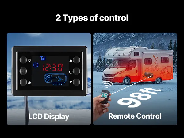 Doppelte Steuerungsoptionen: Mit dieser Standheizung können Sie die Temperatur (46,4–96,8 ℉ / 8–36 °C) ganz einfach über den LCD-Bildschirm oder die Fernbedienung aus bis zu 98 Fuß (30 m) Entfernung einstellen. Vorheizen vor der Fahrt, um Kaltstarts und Energiebedarf zu reduzieren