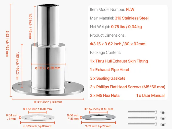Mehrschichtige Dichtungen: Das gerade Auspuff-Montageset für den Rumpf enthält zwei Silikondichtungen und eine Edelstahldichtung, die für zusätzlichen Abstand zwischen Auspuffrohren und Wänden sorgen. Diese Konstruktion hilft, Wandschäden zu vermeiden und Gaslecks während des Abgasstroms zu reduzieren
