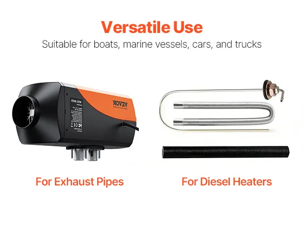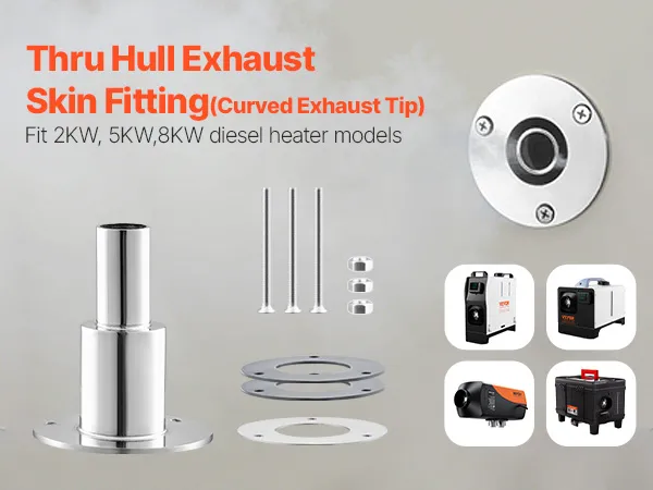 Breite Kompatibilität: Dieses Abgas-Kit für den Rumpf ist als zuverlässiger Ersatz für die meisten 2-kW-, 5-kW- und 8-kW-Dieselheizungen konzipiert. Die rostfreie Konstruktion gewährleistet einen stabilen Abgasstrom und zuverlässigen Betrieb. Bitte bestätigen Sie Ihr Modell vor dem Kauf