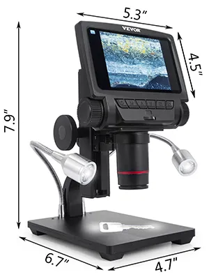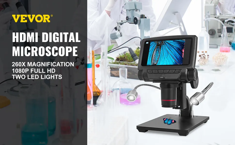 Das professionelle Digitalmikroskop unterstützt 260-fache Vergrößerung, 4-fachen Digitalzoom und 1080P HD-Auflösung (HDMI-Ausgang) / 720P (USB-Ausgang) und hilft Ihnen, das winzige Objekt zu sehen und zu beobachten. Das digitale Mikroskop USB verfügt über einen 5-Zoll-LCD-Bildschirm und einen CMOS-Bildsensor, der Bildaufnahme und Videoaufzeichnung ermöglicht. Mit seiner hervorragenden Leistung wird diese digitale Mikroskopkamera USB häufig für die Reparatur von Leiterplattenlöten, die Beobachtung von Insekten, die Identifizierung von Schmuck usw. verwendet.