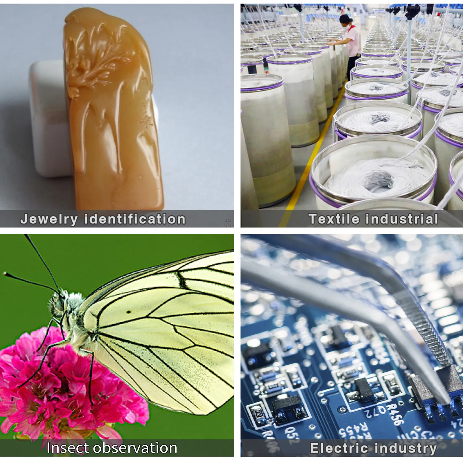 Dieses LCD-Digitalmikroskop wird häufig in der Elektroindustrie, der Insektenbeobachtung, der wissenschaftlichen Forschung, der Schmuckidentifikation und der Textilindustrie eingesetzt.