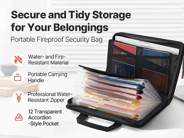 Großes Fassungsvermögen: Unsere feuerfeste Aktentasche misst 14,48 x 10,62 x 1,96 Zoll (368 x 270 x 50 mm_ und verfügt über ein 12-seitiges Akkordeon-Design zur Aufbewahrung. Sie organisiert Dokumente, Akten und Elektronik problemlos und hält alles ordentlich und griffbereit, ohne dass Sie sich durch Stapel wühlen müssen.