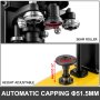 Das Verschließen wird elektrisch gesteuert. Der Ständer kann auf und ab bewegt werden, um sich an Dosen unterschiedlicher Höhe anzupassen, die für eine Höhe von 25 bis 200 mm geeignet sind. Oberer Durchmesser: 51,5 mm; unterer Durchmesser: 51,5 mm.
