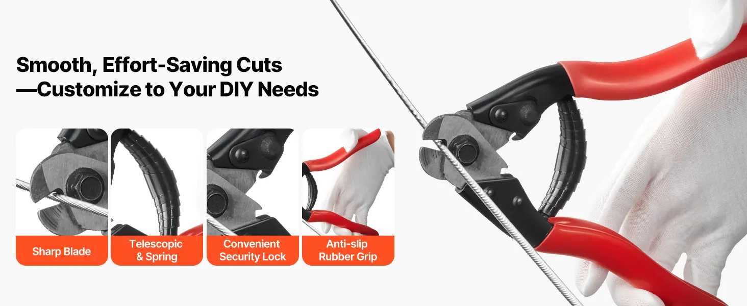 Ergonomischer Kabelschneider inklusive: Dieser Kabelschneider aus dem Drahtseilset verfügt über komfortable Griffe und scharfe Klingen für saubere Schnitte an 316er Drahtseilen. Sie erhalten saubere Enden und reduzieren die Belastung der Hände bei wiederholtem Schneiden