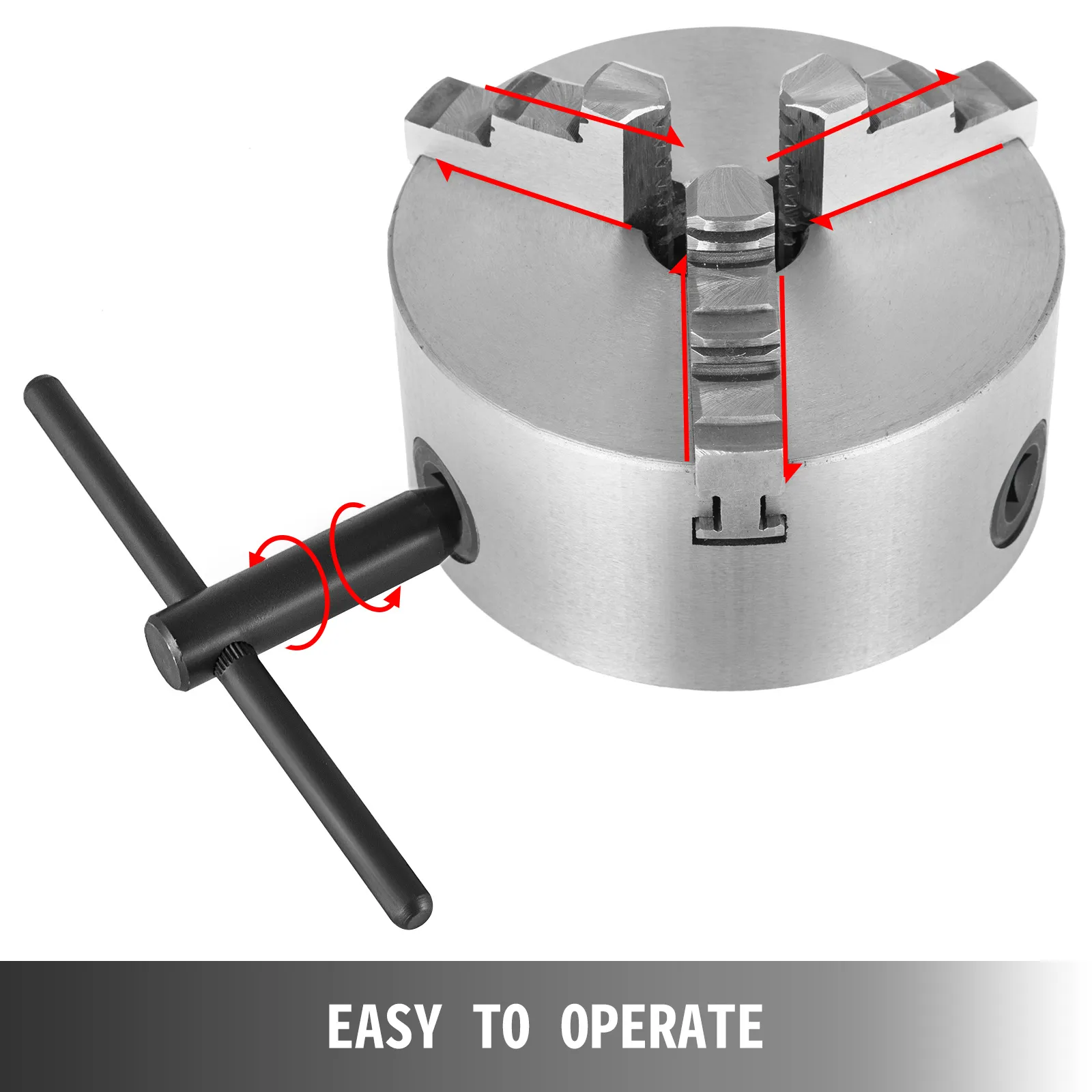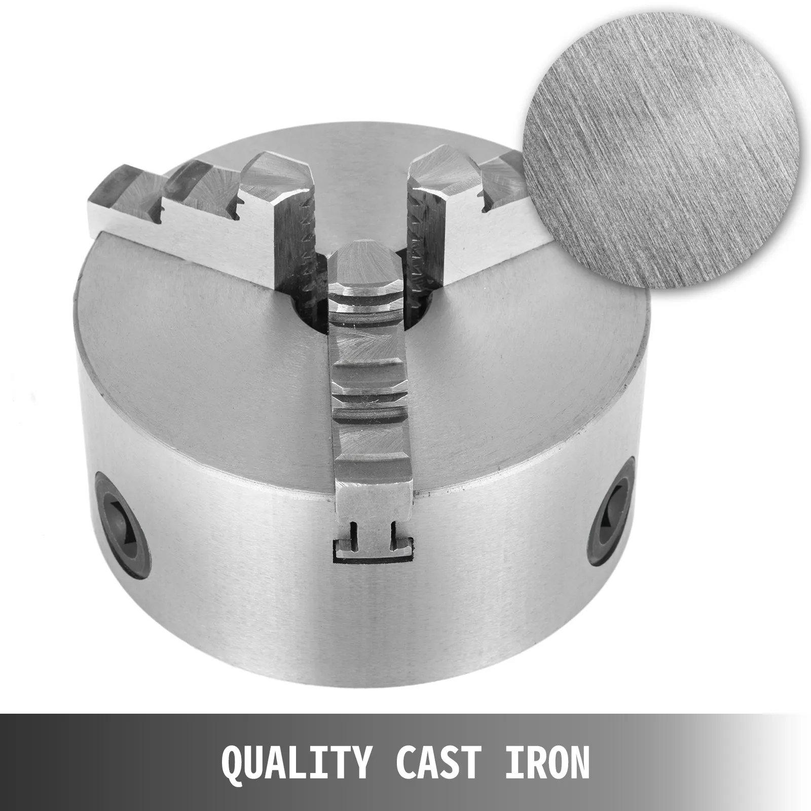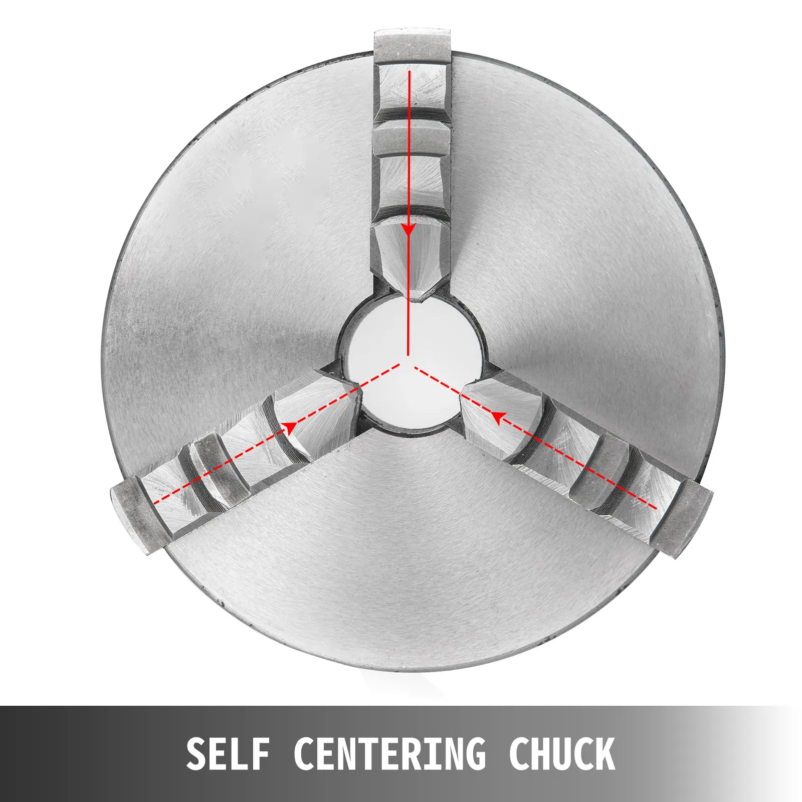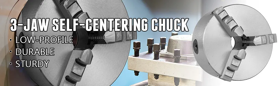 Das selbst zentrierende Drehfutter besteht aus einem starken Gusseisenkörper und drei Backen aus Stahl, damit es rauen Arbeitsumgebungen standhält. Es verfügt über einen breiten Spannbereich und hohe Präzision. Sie können also mit einer Vielzahl von Materialien umgehen, nachdem Sie sie mit einem einzigen T-Griff befestigt haben.